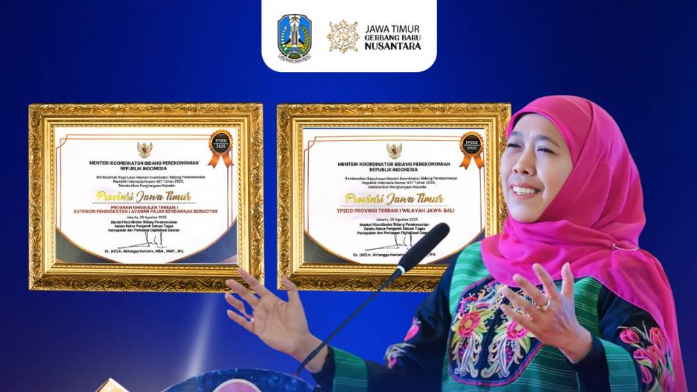 “Alhamdulillah, Jawa Timur kembali memperoleh kepercayaan nasional melalui dua penghargaan pada ajang Implementasi TP2DD yang diselenggarakan Kemenko Perekonomian RI,” ujarnya.