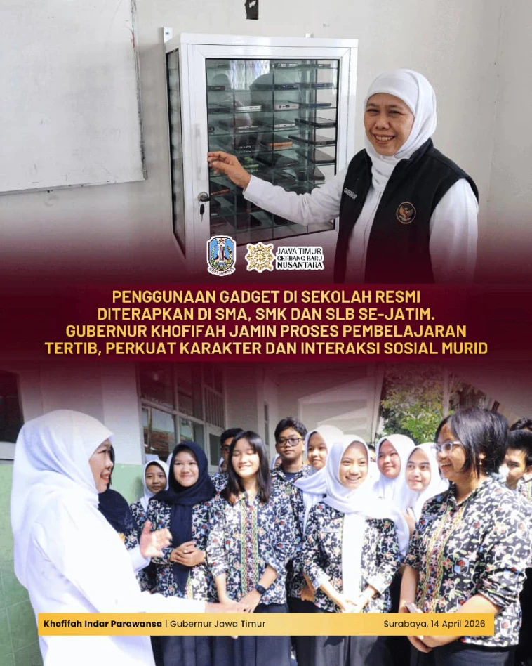 Kebijakan tersebut mulai diterapkan sejak Senin, 13 April 2026. Gubernur Jawa Timur, Khofifah Indar Parawansa, menegaskan bahwa pengaturan penggunaan gadget diperlukan guna memastikan proses pembelajaran berjalan aman, sehat, dan berorientasi pada penguatan karakter peserta didik.